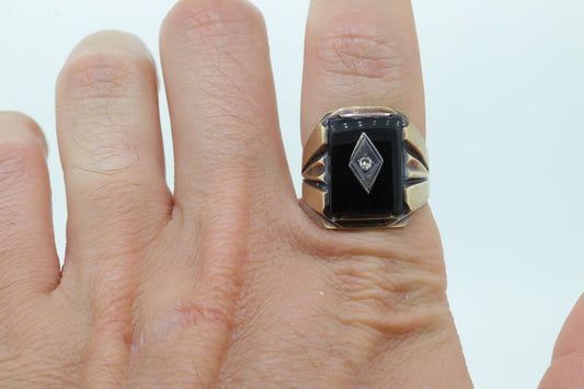 10k ONYX and diamond Signet ring. Heavy Mens Onyx and diamond Signet ring