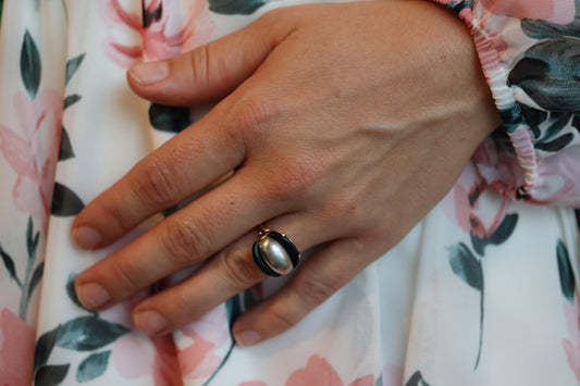 خاتم أونيكس عيار 10 قيراط. خاتم فضة إسترليني عيار 10 قيراط. قبة من الفضة الإسترلينية الحديثة