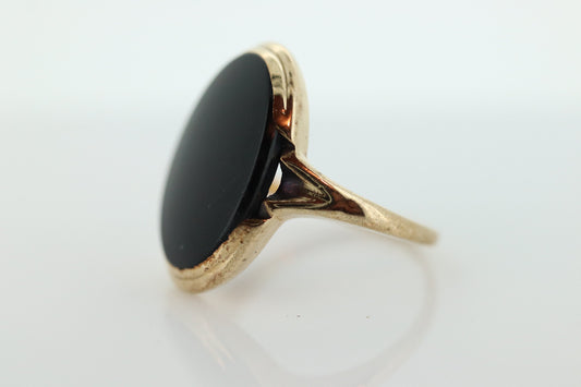 خاتم أونيكس عيار 10 قيراط. خاتم أونيكس بيضاوي رفيع مرصع بإطار. خاتم حداد من ثلاثينيات القرن العشرين. st(55)