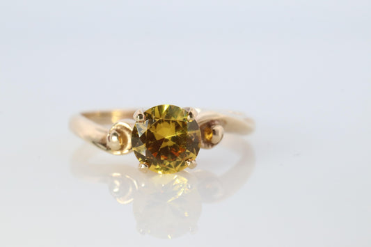 10k Round Sapphire YELLOW Sapphire ring. YELLOW SAPPHIRE solitaire ring.