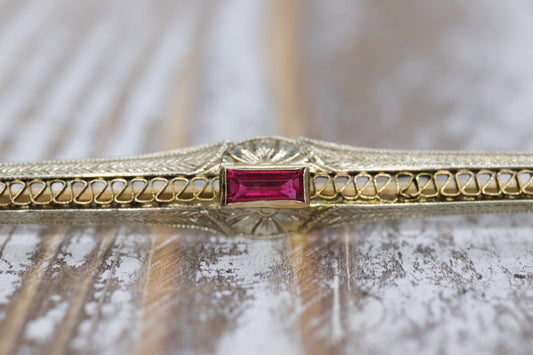 دبوس أو دبوس ملابس داخلية من تصميم آرت ديكو مزخرف بالياقوت عيار 10 قيراط