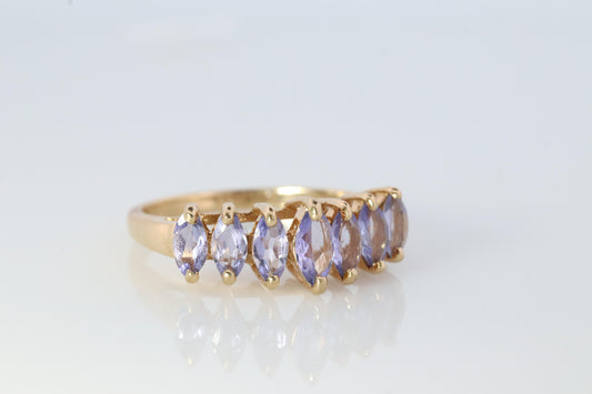 خاتم ذكرى سنوية من حجر التنزانيت عيار 10 قيراط، شريط من 7 أحجار التنزانيت، شريط رحلة