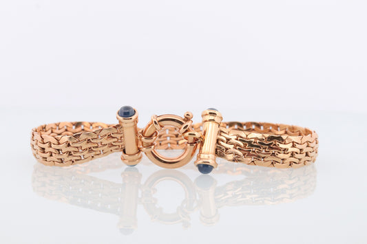 سوار شبكي من سلسلة بسمارك عيار 14 قيراطًا، مشبك من الياقوت الأزرق، وصلة شبكية، سوار بيزنطي إيطالي من الذهب الأصفر، حجر ياقوت أزرق (st374)