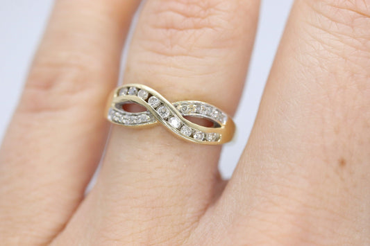 خاتم زفاف INFINITY criss cross X من الألماس عيار 14 قيراطًا.