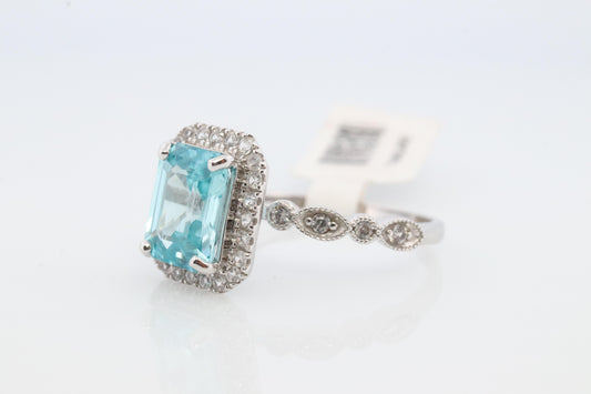 خاتم هالو من التوباز الأزرق والتوباز الأبيض عيار 10 قيراط. خاتم هالو من الأكوامارين عيار 10 قيراط. st(80)
