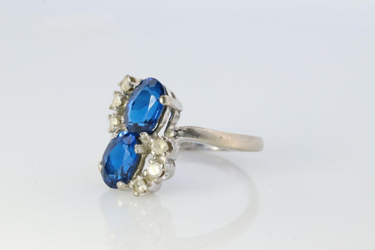خاتم Bypass من الذهب عيار 10 قيراط مرصع بحجر التوباز الأزرق. خاتم Vintage Estate. جوهرة التوباز التوأم.