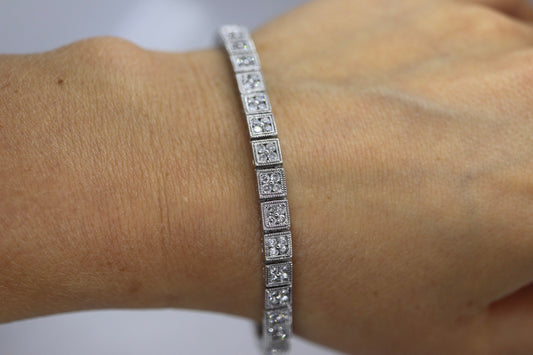 سوار تنس مرصع بالألماس عيار 14 قيراطًا. سوار تنس مرصع بالألماس بحلقات مربعة. 2.72+ قيراط الوزن الإجمالي 23.9 جرامًا