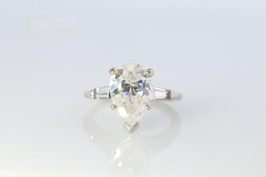 خاتم خطوبة كبير من الذهب عيار 14 قيراطًا مرصع بحجر التوباز الأبيض على شكل كمثرى. خاتم سوليتير على شكل باغيت وكمثرى