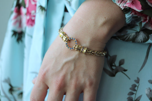 سوار جاكوار من الذهب عيار 14 قيراطًا، سوار النمر الياقوتي، سوار النمر، سوار فم القطة الدائري، سوار منسوج st(660)