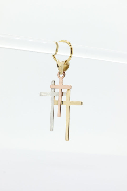 صليب من الذهب عيار 10 قيراط. قلادة على شكل ثلاثة صلبان من الجلجثة. قلادة صليب من الذهب الوردي الأبيض والأصفر عيار 10 قيراط. st(42)