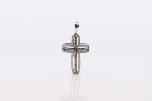 صليب من الذهب عيار 10 قيراط مرصع بالألماس. قلادة من الألماس الأزرق عيار 10 قيراط. صليب مرصع بالألماس.