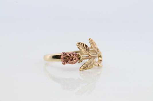 خاتم من الذهب عيار 10 قيراطًا متعدد الألوان على شكل زهرة وردية. مقاس 7