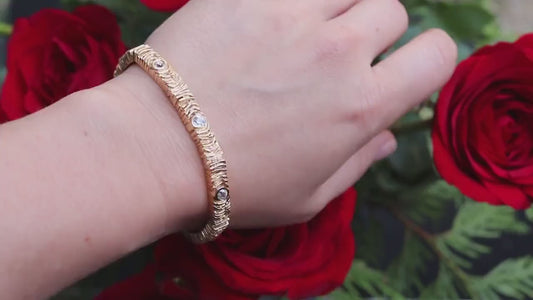 سوار من الذهب الأصفر عيار 14 قيراطًا ومرصع بالألماس للنساء. وزن 1.85 قيراط ووزن 32.8 جرامًا