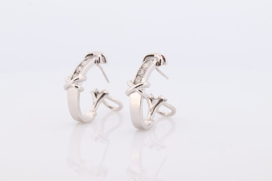 أقراط دائرية من الألماس عيار 14 قيراطًا. أقراط XOXO مرصعة بالألماس من مجموعة شانيل. أقراط دائرية من الألماس متدلية من الذهب الأبيض بوزن 0.65 قيراط تقريبًا