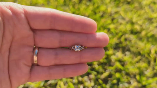 خاتم LOVE. خاتم سوليتير من الذهب الأصفر عيار 10 قيراط مرصع بحجر السبينل الأزرق الدائري. خاتم Love. كلمة Love.