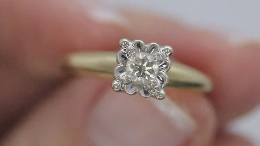 خاتم ألماس آرت ديكو. طاولة مربعة من الذهب الأصفر والأبيض عيار 14 قيراط.
