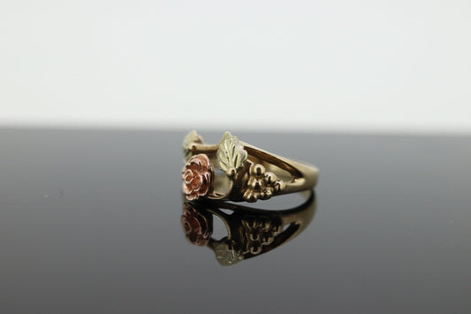خاتم ذهب من بلاك هيلز. خاتم ذهب من بلاك هيلز متعدد الألوان عيار 10 قيراط مرصع بالورود. مقاس 5 متوفر (63)
