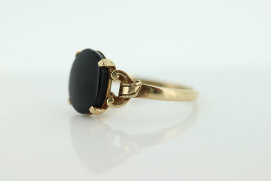 خاتم من حجر العقيق عيار 10 قيراط. خاتم حداد فيكتوري مرصع بحجر العقيق البيضاوي. أكتاف مزخرفة. (st32/20)