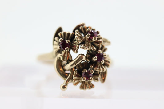 خاتم من الذهب عيار 10 قيراط مرصع بأحجار الياقوت على شكل قبة ماركيز. مقاس 97/75