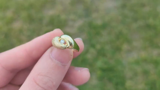 خاتم ياقوت عتيق عيار 14 قيراطًا. خاتم مرصع بثلاثة ياقوتات. ذهب أصفر عيار 14 قيراطًا ومرصع بثلاثة ياقوتات. شريط عريض من الياقوت. st(109)