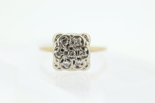 خاتم من الألماس المنقوش من مجموعة Belcher العتيقة عيار 14 قيراطًا. خاتم ألماس من العصر الفيكتوري بوزن 0.15 قيراطًا للنساء، مقاس 7.5 قيراطًا (81)