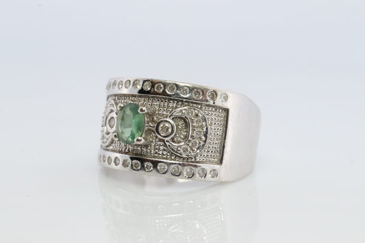 خاتم Le Vian Le Vian عريض من الياقوت الأزرق المخضر والألماس. ذهب أبيض عيار 14 قيراطًا مرصع بألماس مزدوج على شكل حرف C. (265)