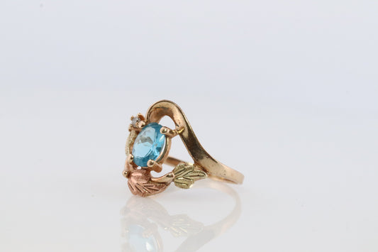 خاتم من الذهب من بلاك هيلز. خاتم من الذهب من بلاك هيلز مرصع بأحجار التوباز الأزرق متعددة الألوان عيار 10 قيراط والألماس.