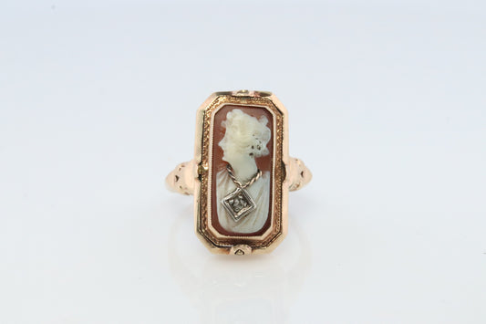 خاتم قابل للعكس مرصع بالعقيق عيار 10 قيراط والماس المزخرف. خاتم فيكتوري / خاتم ريفيرسو. خاتم ريفيرسو من الذهب الأصفر عيار 10 قيراط.