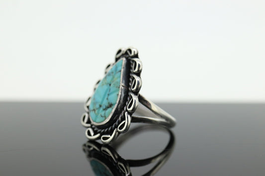 خاتم زوني نافاجو كبير من الفضة الإسترلينية. خاتم LEAF مرصع بإطار فيروزي. St(20)