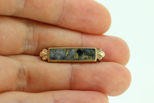 دبوس أو دبوس ملابس داخلية من العصر الفيكتوري مصنوع من بذور عقيق الكوارتز عيار 10 قيراط. دبوس من عقيق الأوردة الذهبي. st(55)