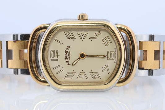 Genuine HERMES RALLYE XL Stainless Steel 25mm RA1.240 Quartz Watch Champagne.