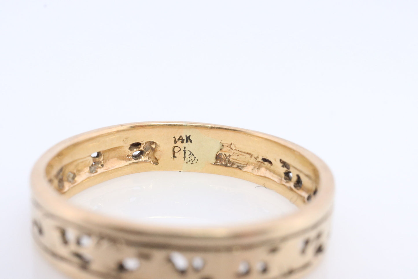 شريط مزخرف من الذهب عيار 14 قيراطًا بتصميم زهرة ديزي عتيقة منقوشة. مقاس 12، 4.4 جرام
