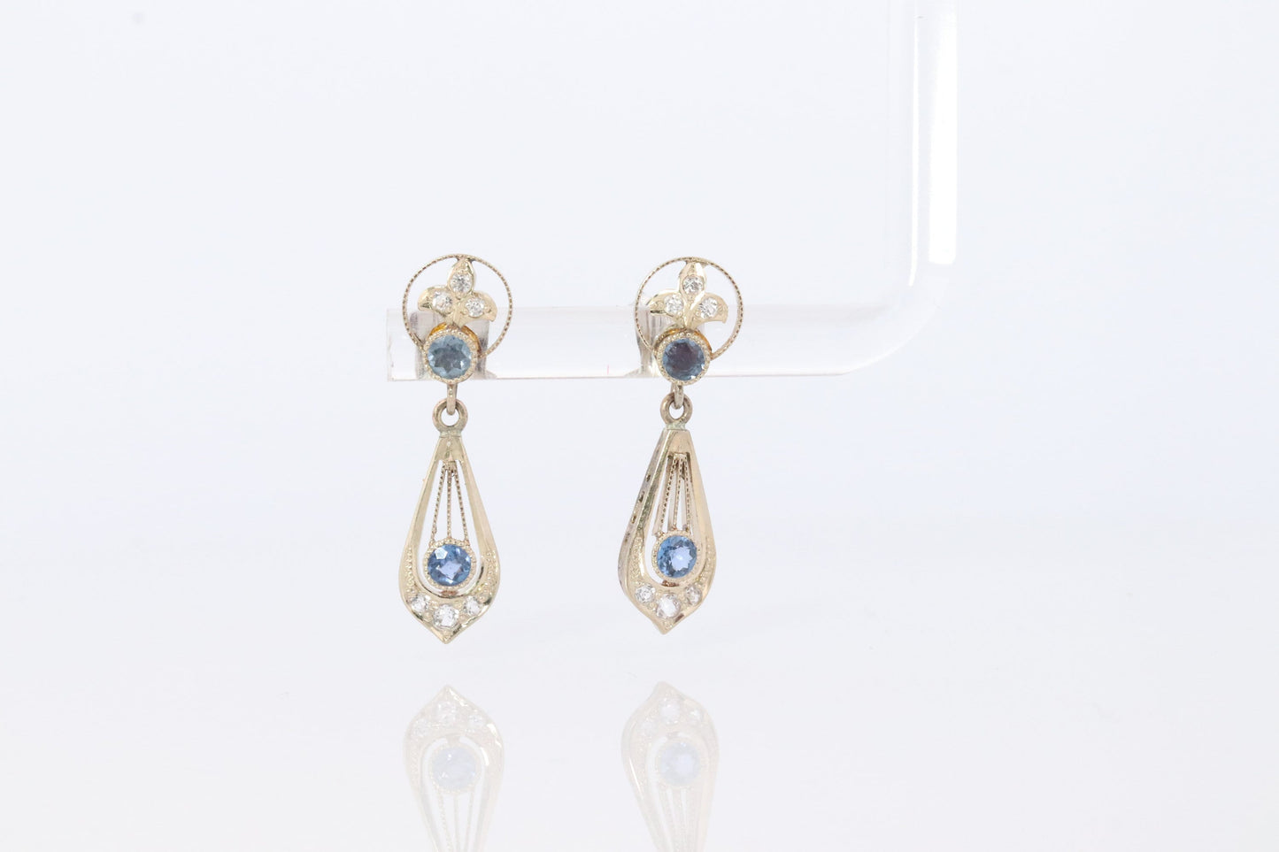 أقراط متدلية عتيقة من الياقوت الأزرق عيار 14 قيراطًا. أقراط الأميرة من الياقوت الأزرق. أقراط الثريا عيار 14 قيراطًا. لافاليير
