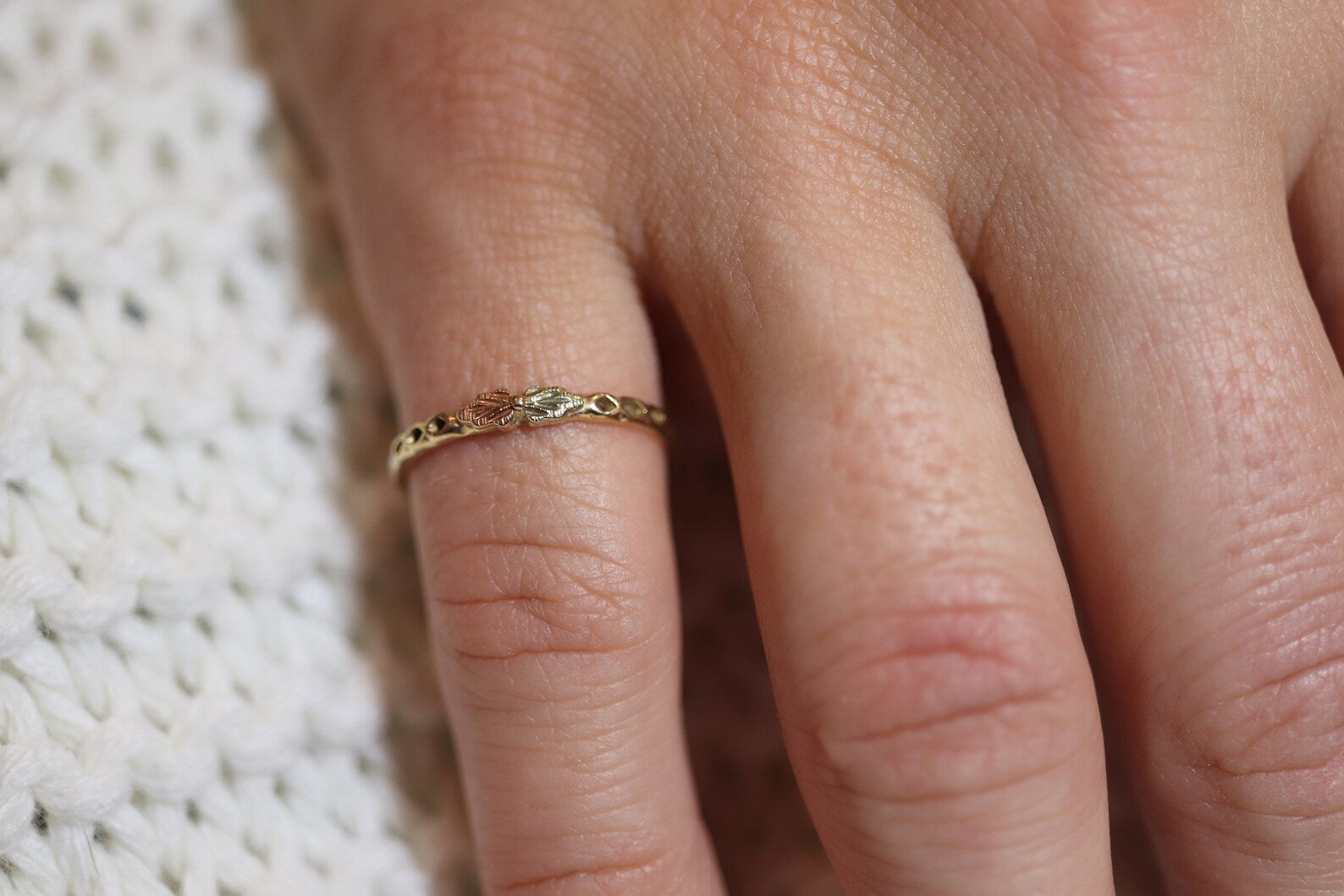 خاتم ذهب بلاك هيلز. خاتم زفاف من ذهب بلاك هيلز عيار 10 قيراط. ذهب بلاك هيلز العتيق. (62)