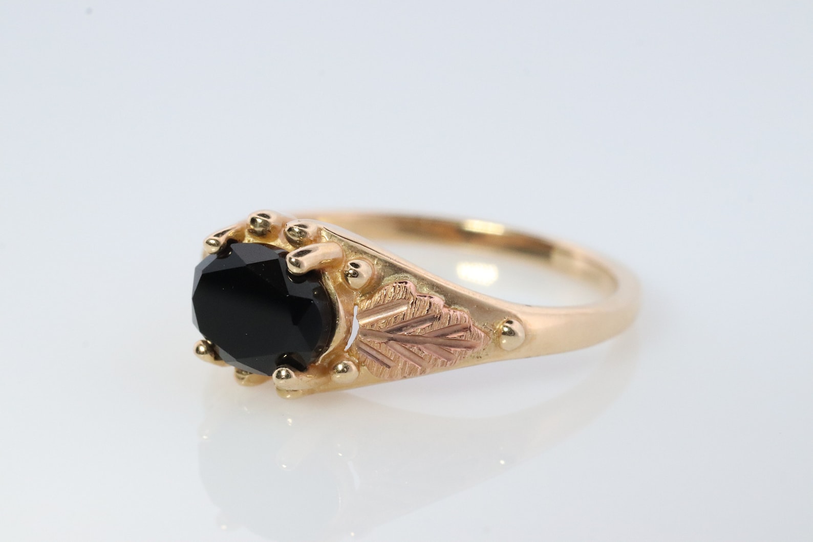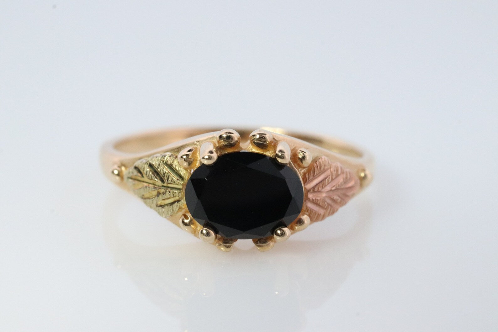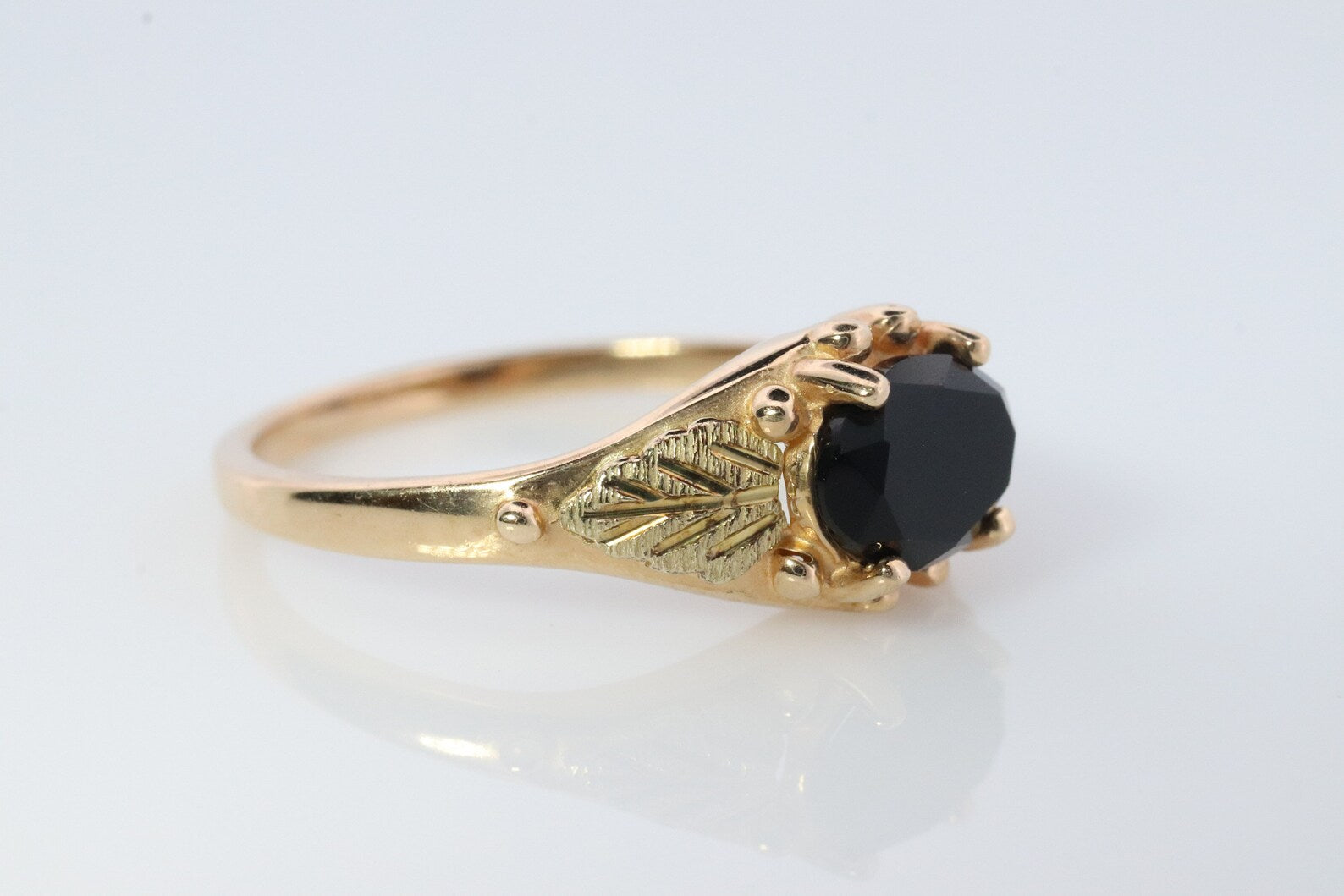 خاتم ذهب بلاك هيلز. خاتم سوليتير من الذهب عيار 10 قيراط مرصع بالعقيق. مقاس 7 (62)