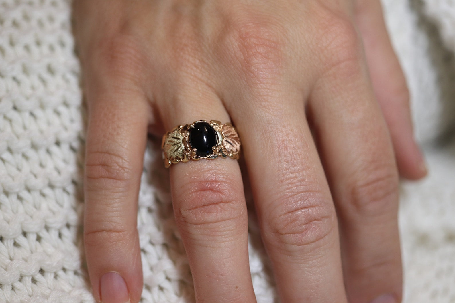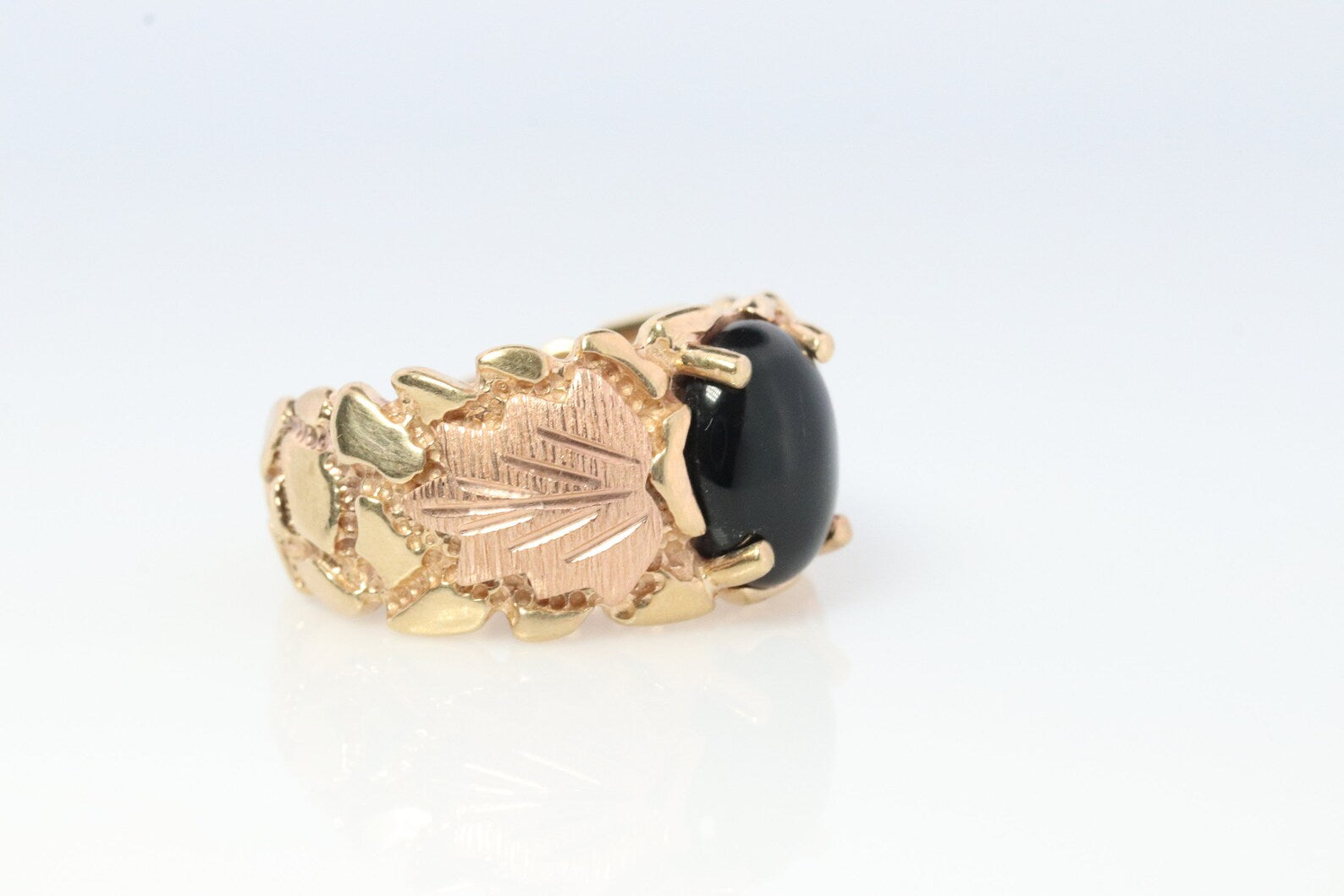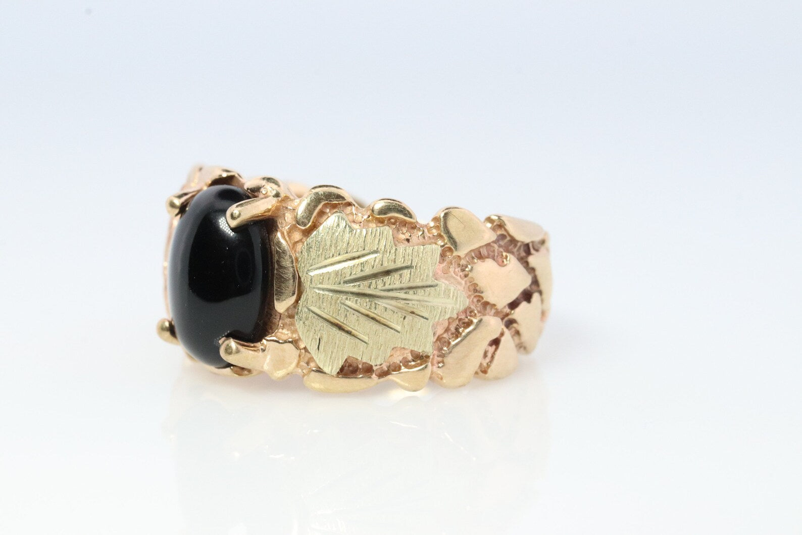 خاتم ذهب من بلاك هيلز. خاتم سوليتير من ذهب بلاك هيلز مرصع بحجر العقيق عيار 10 قيراط. شريط من ذهب بلاك هيلز عيار 12 قيراط. مقاس 6.5 (st54)