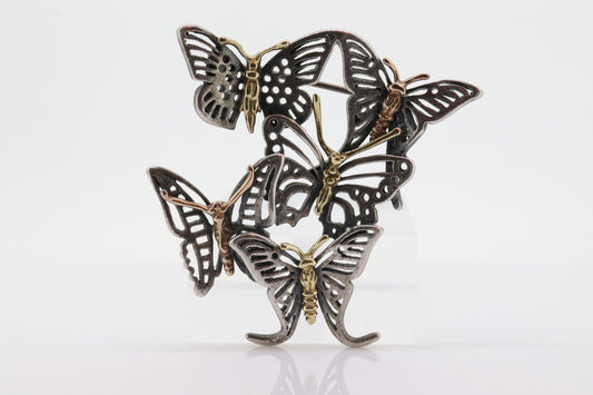 LAGOS Caviar Butterfly Brooch. Sterling Silver 18K Yellow Gold Butterfly Charm Heavy Pin Brooch. (st71)