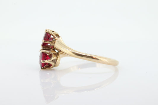 JR Wood 14K Garnet Twin Band. Vintage Jr Wood and Sons Garnet Victorian claw bypass ring. st(81)