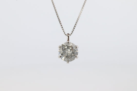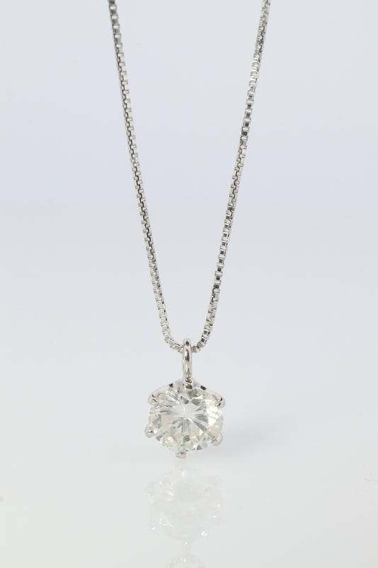 Large Diamond solitaire pendant. Platinum Pt900 Round diamond 1CT Necklace