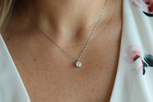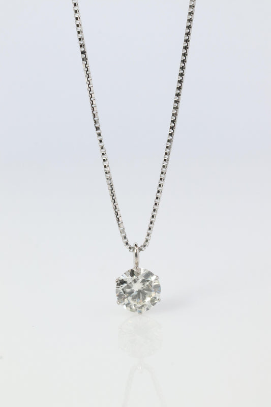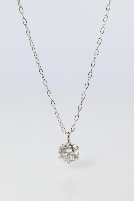 Large Diamond solitaire pendant. Platinum Pt999 Round diamond 0.9CT Necklace