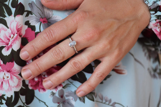 LARGE Diamond Oval engagement ring. Platinum 1CT Oval Diamond Solitaire baguette