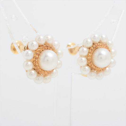 Mikimoto Earrings. 18k Yellow Gold Mikimoto Pearl Cluster Stud Pierced Earrings.