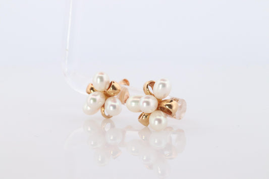 Mikimoto Earrings. Vintage 14k Gold Mikimoto Pearl cluster Clip Ons. Unpierced