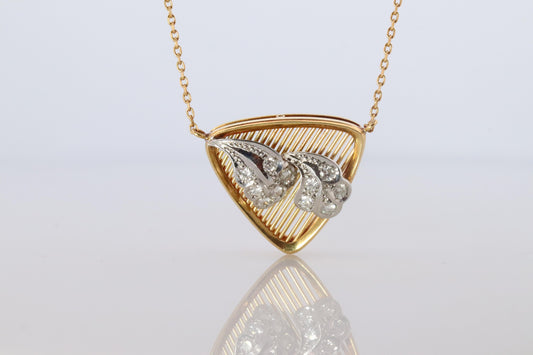 Mikimoto Pendant. Vintage 18k YG and Pt900 Mikimoto Diamond Shield Necklace