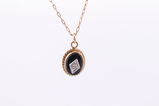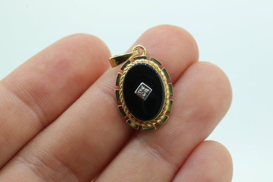 Onyx Diamond Pendant. Gold Filled 1/20th 14k Art Deco Mourning Onyx Pendant for a necklace. oval Onyx Pendant. st(37)
