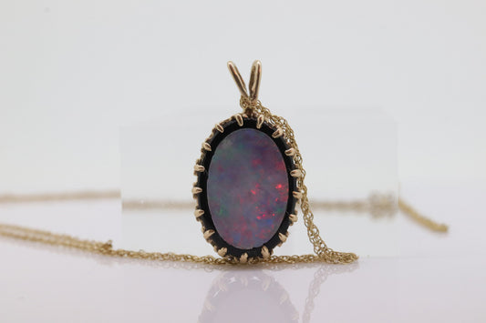 Opal Onyx Pendant. 14k Yellow Gold Medallion. Wonderful Opal Crown set. Opal and Onyx Doublet Pendant. (st198)