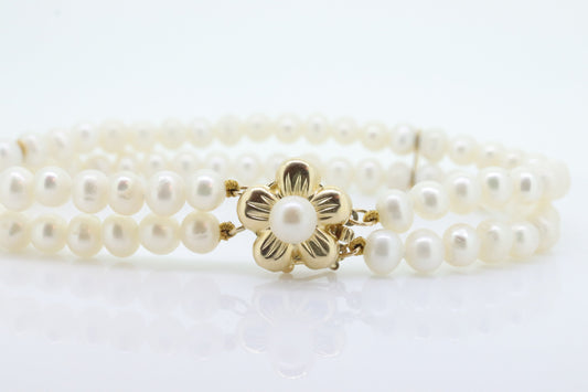 Pearl Bracelet Double Strand Pearls 14k yellow gold Pearl clasp. Flower Pearl Clasp Bracelet. Pearl Bracelet st(63)