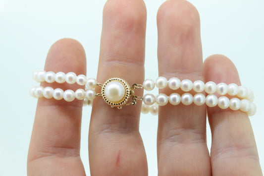 Pearl Bracelet Double Strand Pearls 14k yellow gold Pearl clasp. Pearl Bracelet. Pearl Bracelet st(69)