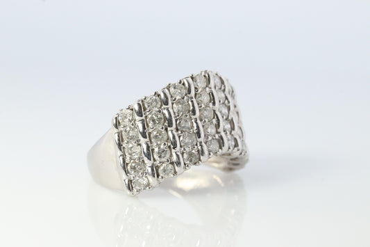 Platinum Diamond Cluster ring Wave PT900 1ctw diamonds in 4 rows Encrusted band