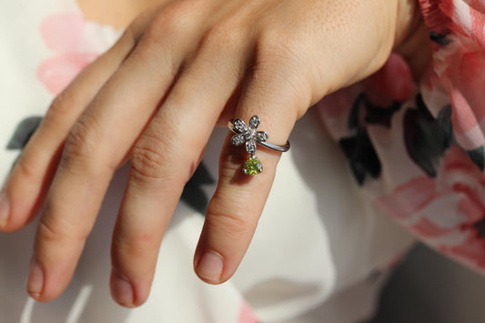 Platinum Yellow Diamond Flower ring. Pt900 Canary Diamond Dangle cluster band.